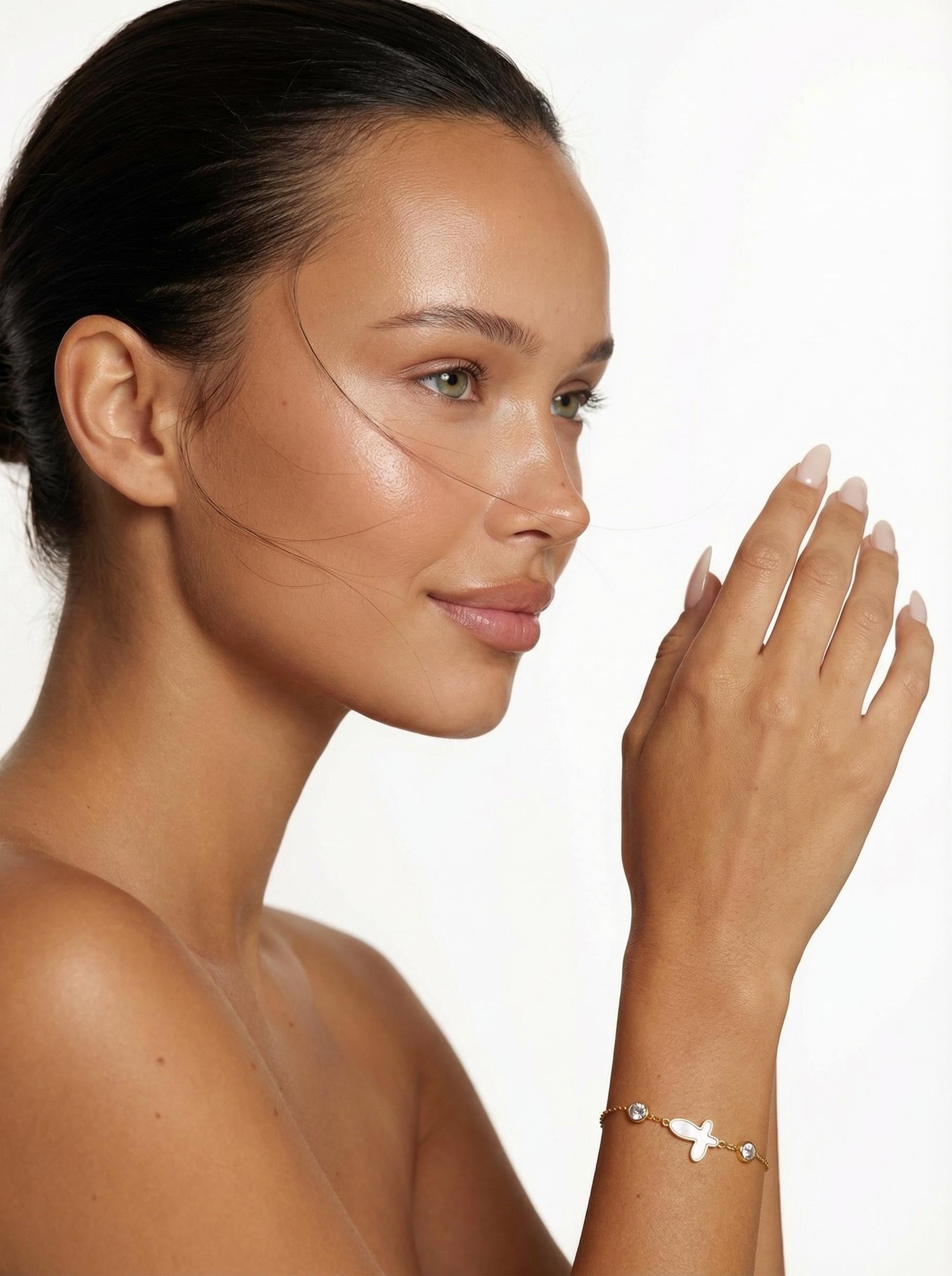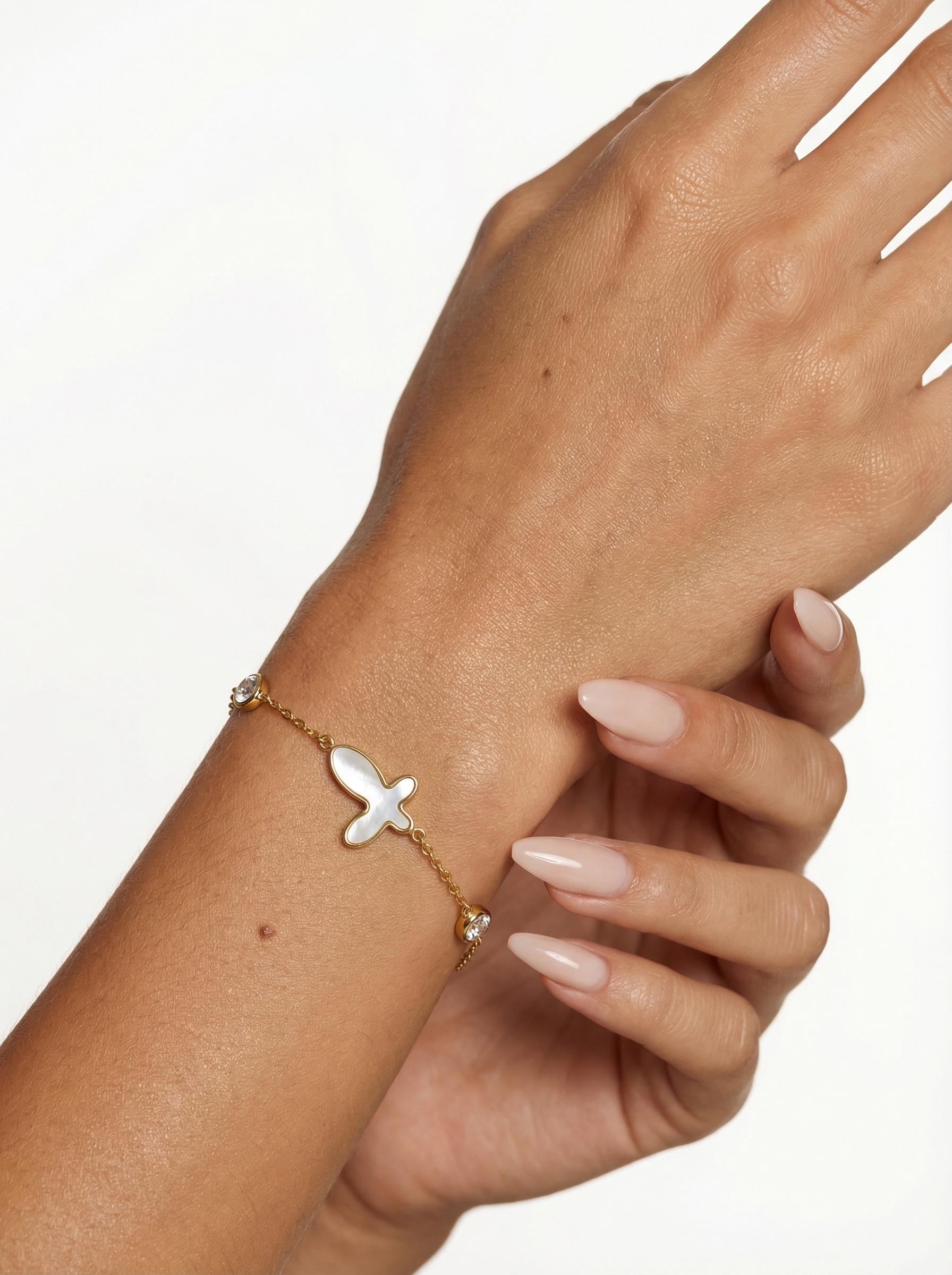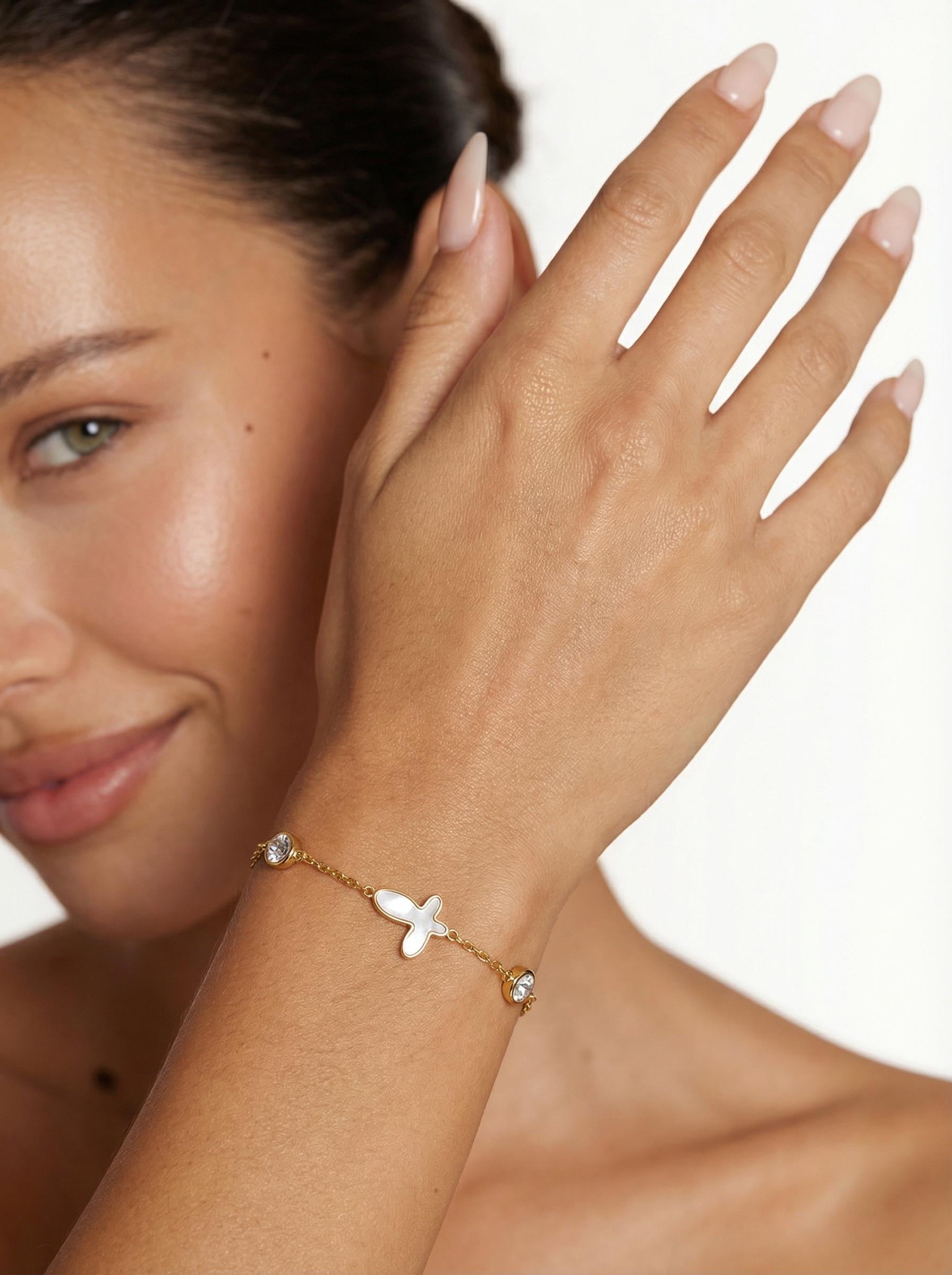 Iridescent mother of pearl takes flight as a delicate butterfly—ancient symbol of transformation and new beginnings.